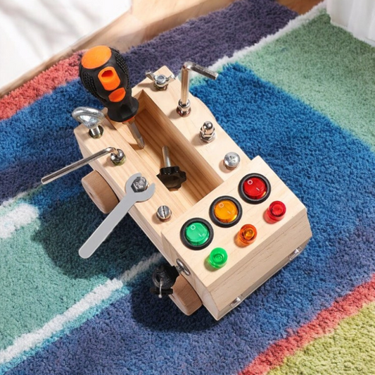 Wooden Cart with Tools, Switches & Lights